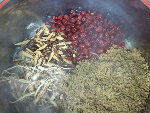 둘쨋날, 무가 고아지면 마늘, 대추, 생강 도라지, 감초, 법제한 백개자,산조인등의 약재를 넣고