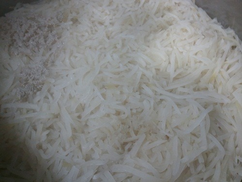 찹쌀과 수수를 미리 씻어 이틀간 물에 불린 후 고두밥을 쪄서 엿질금과 혼합합니다.