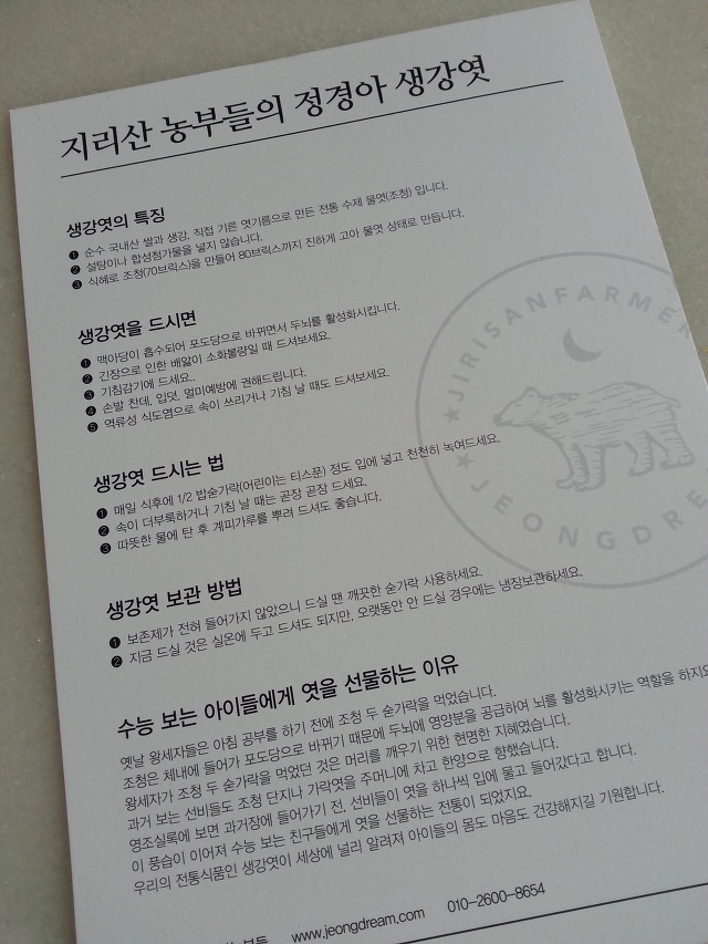 <생강엿 설명서 동봉합니다.>