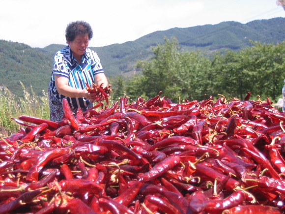 10월 - 태양초 고추. 작년 가을 인근 마을을 돌며 3물 4물 고추로, 태양초인것만 골라골라 수매했습니다.