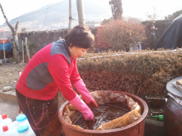 한 후에 효소와 젓갈로 농도와 간을 맞추고, 마지막에 쌀엿을 넣습니다.