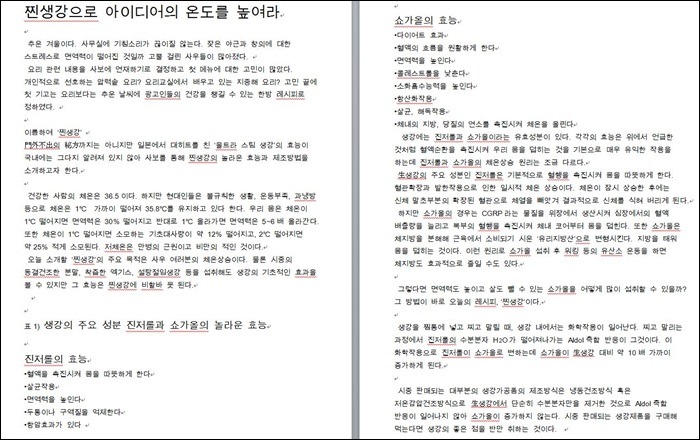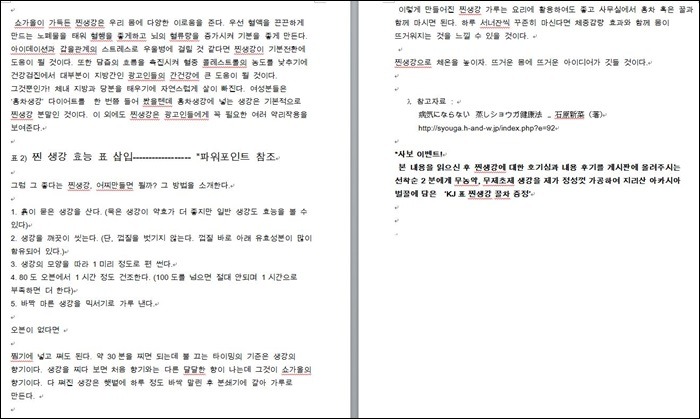 못한 효과들이 후기글로 전해져서 그때 생강의 가치를 처음 인식하게 되었지요.