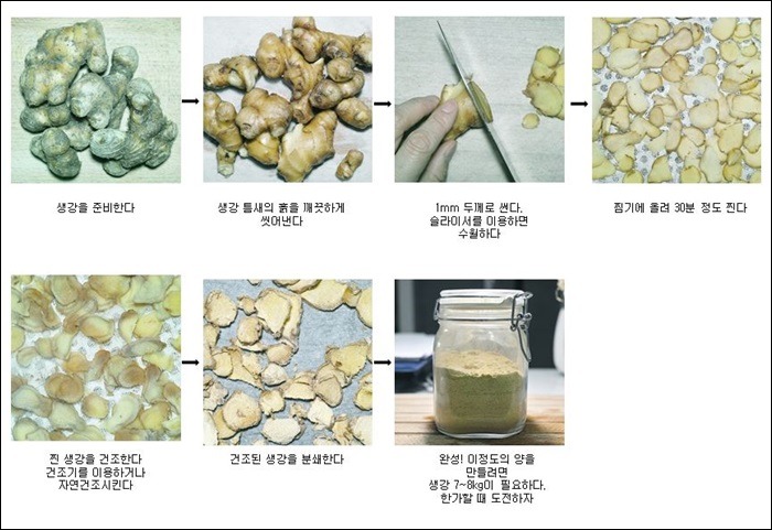 각 가정에서 직접 만들어 드시고, 생강가루를 만들어 판매하시는 데서도 원리를 이해하시고