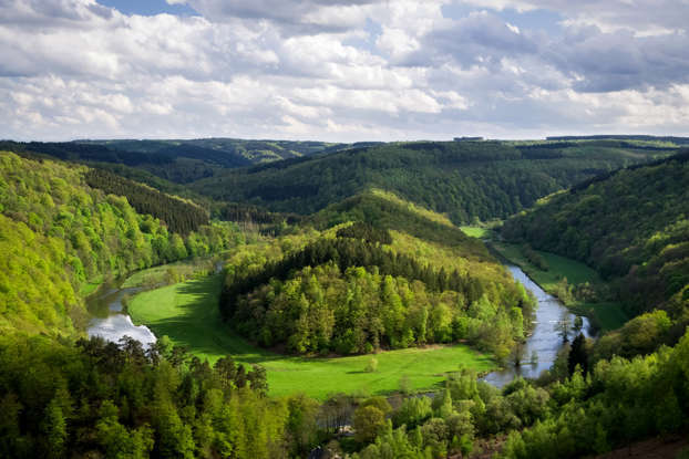 초록이 울창한 숲과 고대 암석 사이를 흐르는 강이 어우러져 천혜의 자연환경을 제공합니다.