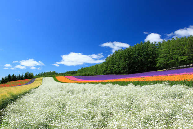튤립, 라벤더, 해바라기, 달리아 등 알록달록 다양한 색의 꽃으로 뒤덮인 홋카이도의 풍경은 눈부시게 아름답습니다.