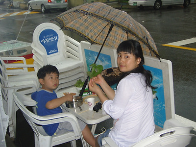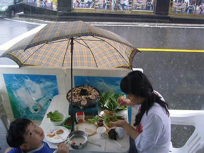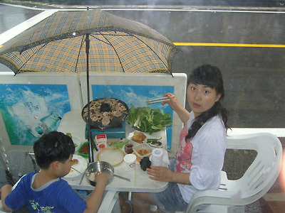 자리를 뜰 수가 없어서 우산으로 비를 피해가면서 먹을 수 밖에.....