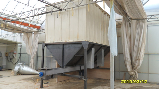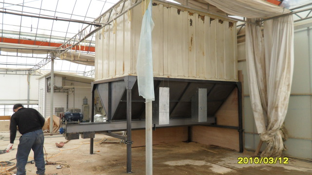 현재 집진부쪽인 하우스안에 설치하여 이송기와 승강기를 통한 배출방식의 두가지를 검토하여