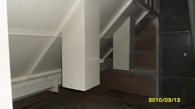 좌측에 있는 집진기가 기존에 있던 왕겨집진기인데 이것을 떼어내고 그 자리에 왕겨탱크를 설치하고 있는 모습.