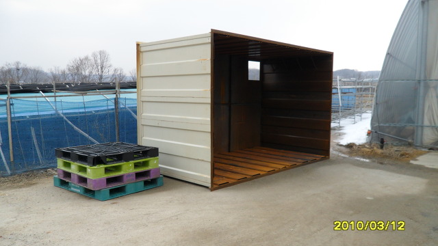 컨테이너박스형태의 왕겨탱크이며 왕겨가 바로 이 탱크안에 모이도록 하는 방식입니다.