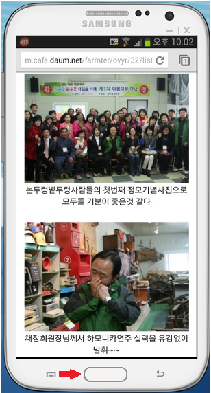 ♣ 스마트폰 아래쪽 중앙에 위치한 버턴이 홈(Home)버턴입니다.