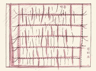 - 셔어링 할 곳을 일정하게 개더를 잡은 다음 개더의 박음선 위를 재봉틀로 눌러 박거나 뒤에서 손 바느질로 박음질을 한다.