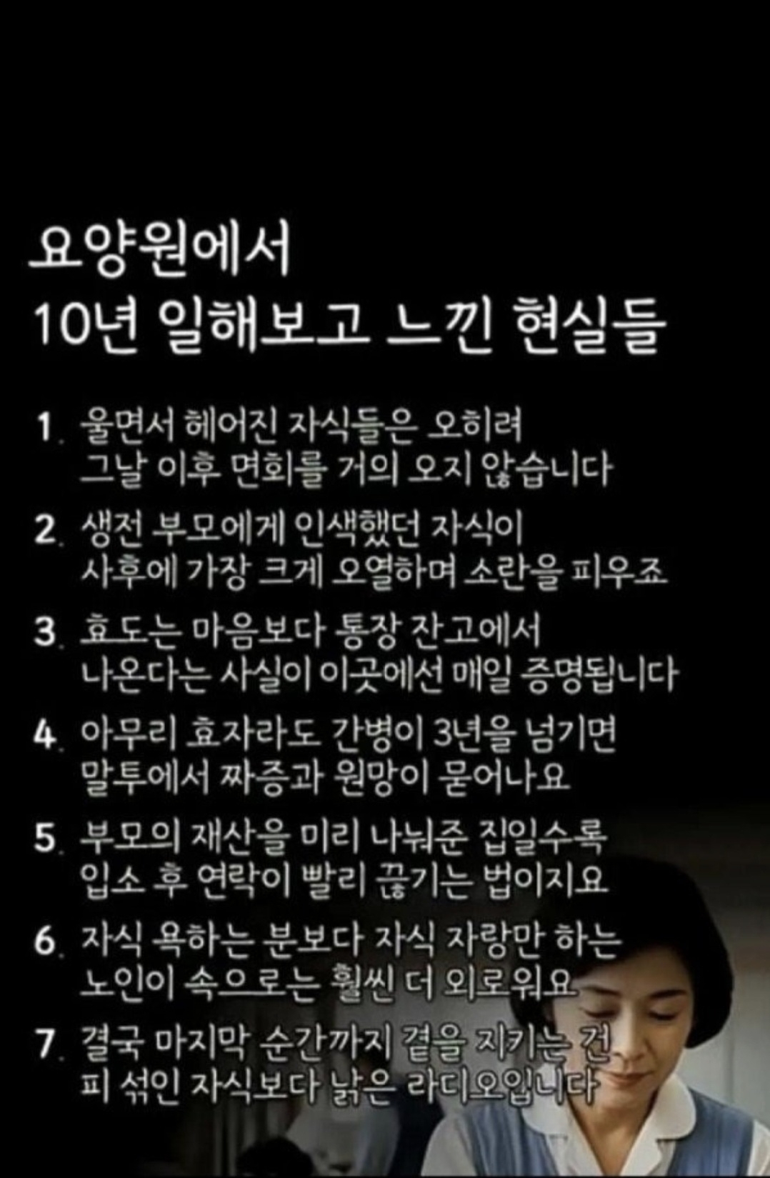 요양원 10년 근무자가 느낀 현실 작성자정기스칸|작성시간26.03.28|조회수99 목록 댓글 2 글자크기 작게가 글자크기 크게가 다음검색 현재 게시글 추가 기능 열기 북마크 공유하기 신고 센터로 신고 댓글 댓글 2 댓글쓰기 답글쓰기 댓글 리스트 작성자에너지 | 작성시간 26.03.28 ........ 작성자김종승 | 작성시간 26.03.28 감사합니다 댓글 전체보기