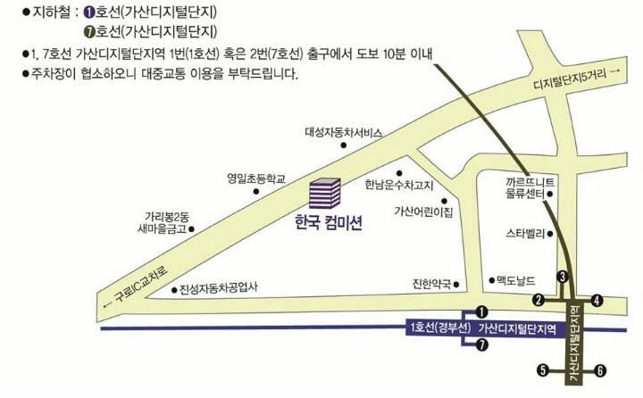 (지하철로는 1호선, 7호선 가산 디지털 단지역 하차)