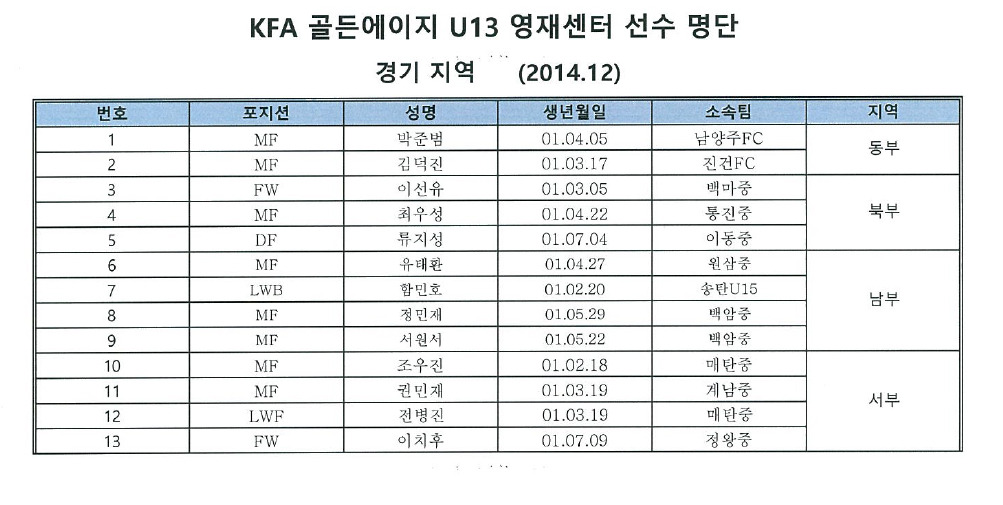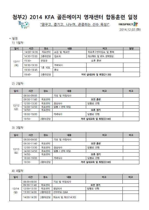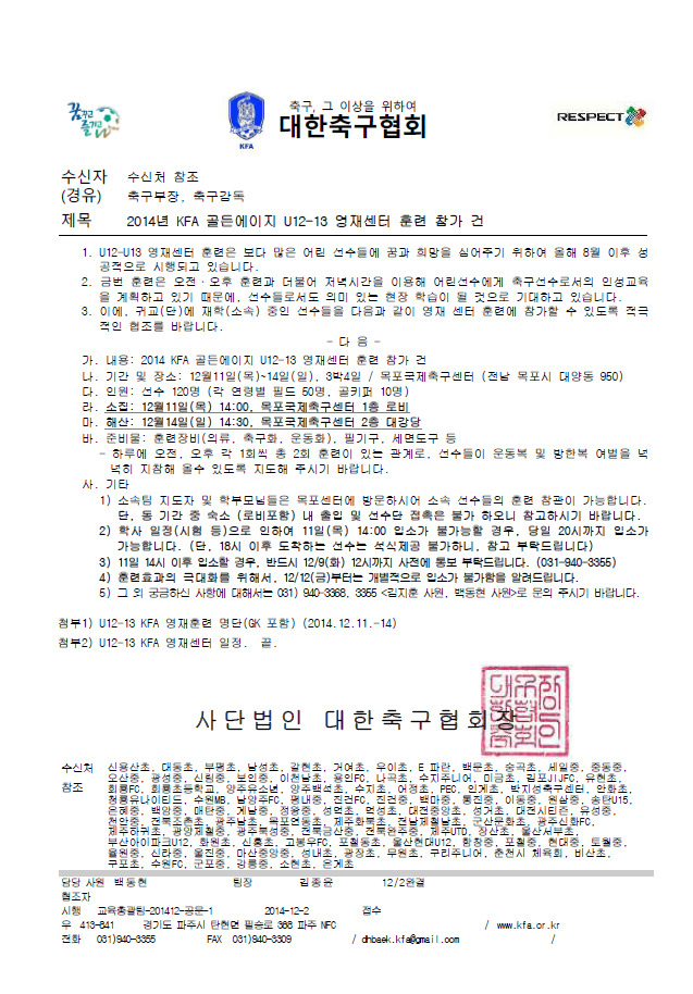 ■ 내용 : 2014년 KFA 골든에이지 U-12-U-13 영재센터 훈련