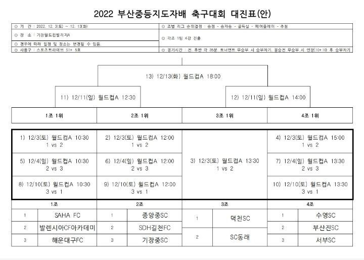[스크랩] 2022 부산중등지도자배 축구대회 대진표(12월3일~13일=기장월드컵빌리지) 작성자블루문|작성시간22.11.22|조회수417 목록 댓글 0 글자크기 작게가 글자크기 크게가 다음검색 스크랩 원문 : 풋볼뉴스(Football News) 현재 게시글 추가 기능 열기 북마크 공유하기 신고 센터로 신고 댓글 댓글 0 댓글쓰기 답글쓰기 댓글 리스트