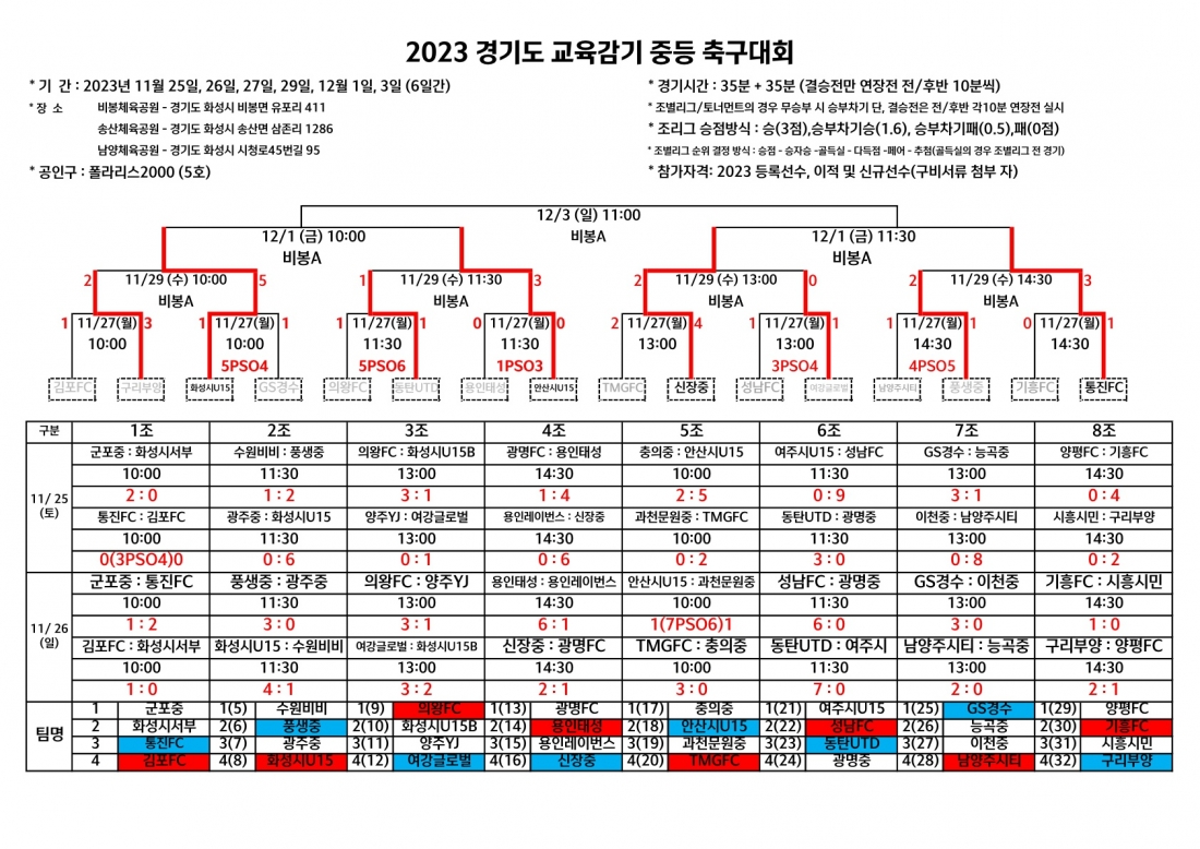 | 6 | 2023-11-25-토-11:30 | 광주중 : 화성시U15 | 비봉B | 0 : 6 |