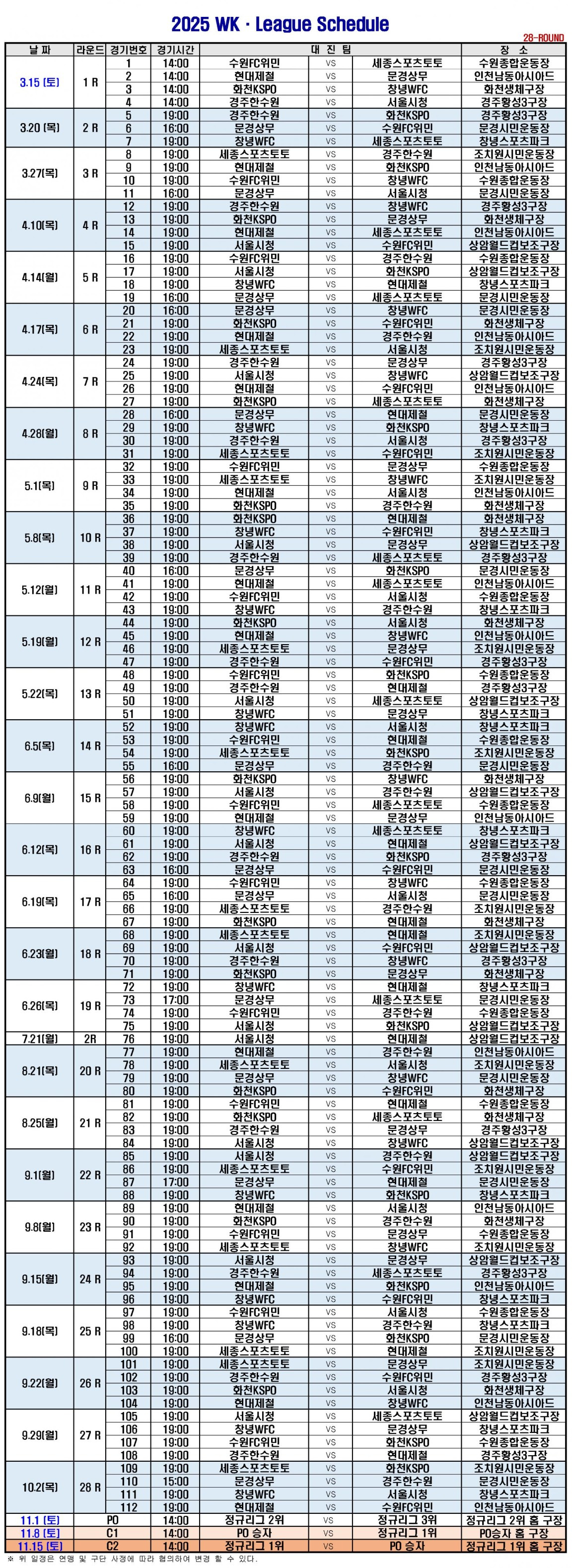 [스크랩] [여자부]2025 WK리그 일정표(3월15일~11월15일) 작성자블루문|작성시간25.03.04|조회수365 목록 댓글 0 글자크기 작게가 글자크기 크게가 (타이틀미정)_2025_WK리그_일정_확정본.pdf145.55KB 첨부파일첨부된 파일이 2개 있습니다. etc 파일 Screenshot 2025-03-04 at 11.05.12.JPG 다운로드 pdf 파일 (타이틀미정)_2025_WK리그_일정_확정본.pdf 다운로드 다음검색 스크랩 원문 : 풋볼뉴스(Football News) 현재 게시글 추가 기능 열기 북마크 공유하기 신고 센터로 신고 댓글 댓글 0 댓글쓰기 답글쓰기 댓글 리스트