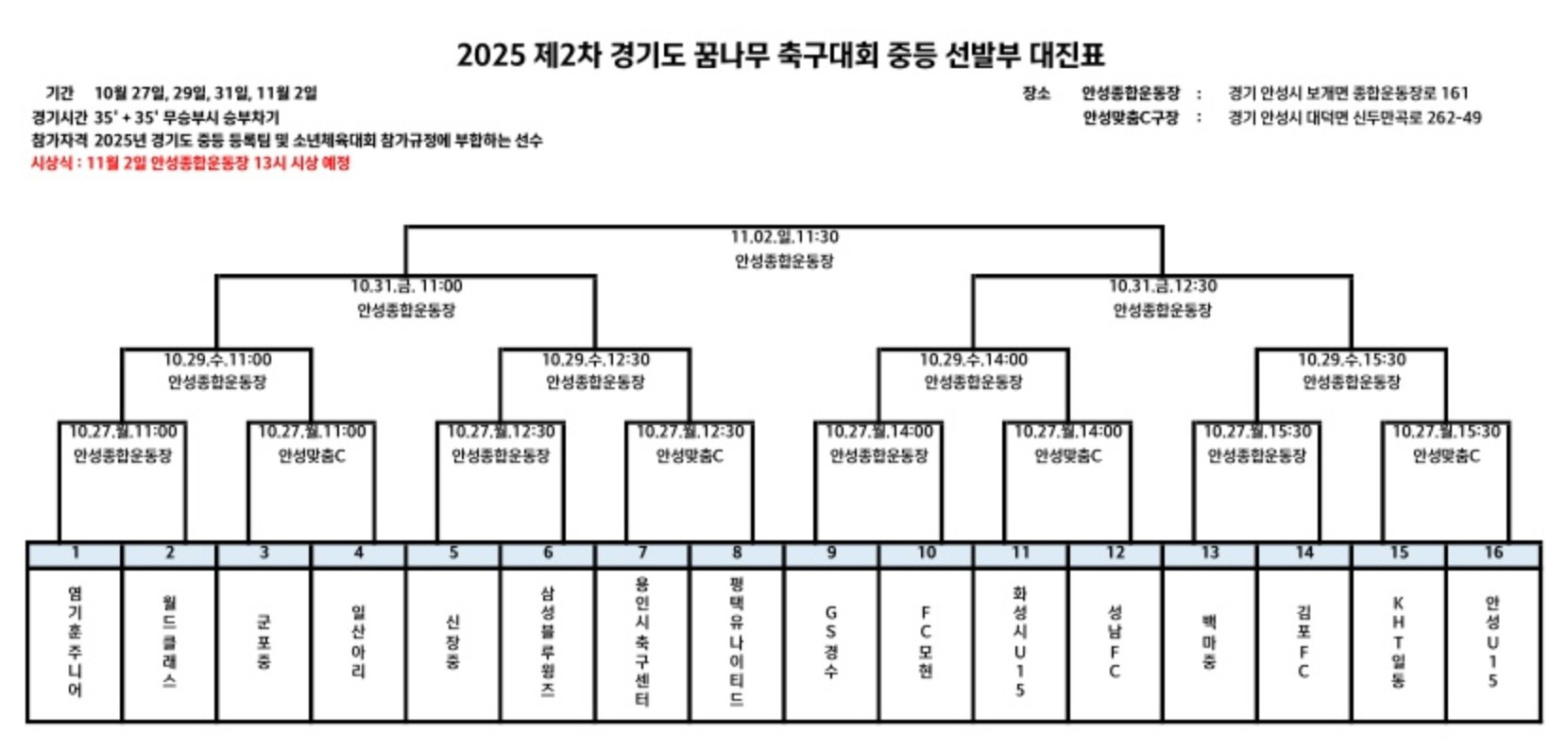 [스크랩] 2025 제2차 경기도 꿈나무 축구대회(중등부 선발전) 대진표(10월27일~11월2일) 작성자블루문|작성시간25.10.14|조회수474 목록 댓글 0 글자크기 작게가 글자크기 크게가 다음검색 스크랩 원문 : 풋볼뉴스(Football News) 현재 게시글 추가 기능 열기 북마크 공유하기 신고 센터로 신고 댓글 댓글 0 댓글쓰기 답글쓰기 댓글 리스트