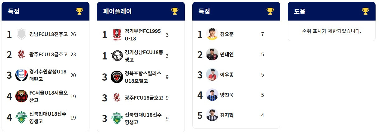 [스크랩] 2025 K리그 주니어 U18(A - 상위스플릿) 순위표(10월25일---10월27일/29일) 작성자한국축구신문관리자|작성시간25.10.26|조회수31 목록 댓글 0 글자크기 작게가 글자크기 크게가 다음검색 스크랩 원문 : 풋볼뉴스(Football News) 현재 게시글 추가 기능 열기 북마크 공유하기 신고 센터로 신고 댓글 댓글 0 댓글쓰기 답글쓰기 댓글 리스트