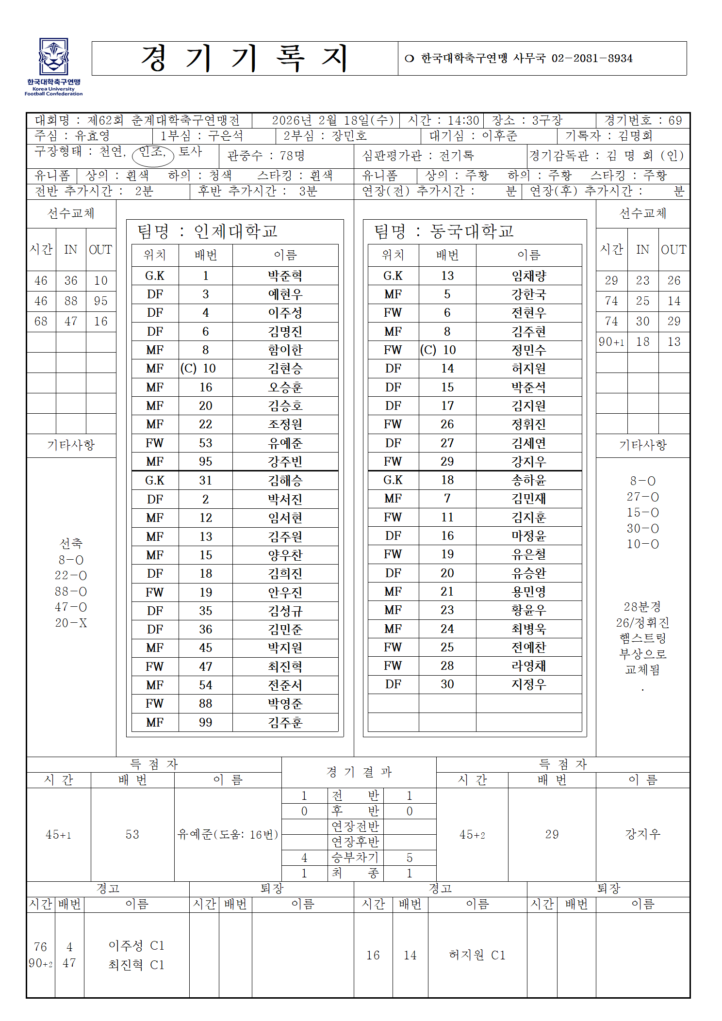 [스크랩] 2026 약속의 땅 통영 제62회 춘계대학축구연맹전 통영기 경기기록지(2월18일)=16강전 작성자블루문|작성시간26.02.18|조회수236 목록 댓글 0 글자크기 작게가 글자크기 크게가 다음검색 스크랩 원문 : 풋볼뉴스(Football News) 현재 게시글 추가 기능 열기 북마크 공유하기 신고 센터로 신고 댓글 댓글 0 댓글쓰기 답글쓰기 댓글 리스트