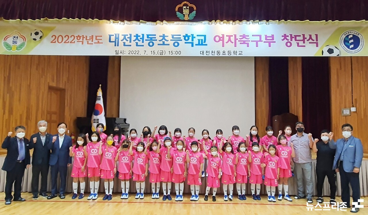 [대전=뉴스프리존] 이현식 기자= 대전천동초등학교(교장 홍병기)는 15일 오후 대전천동초등학교 강당에서 여자축구부 창단식을 진행했다.