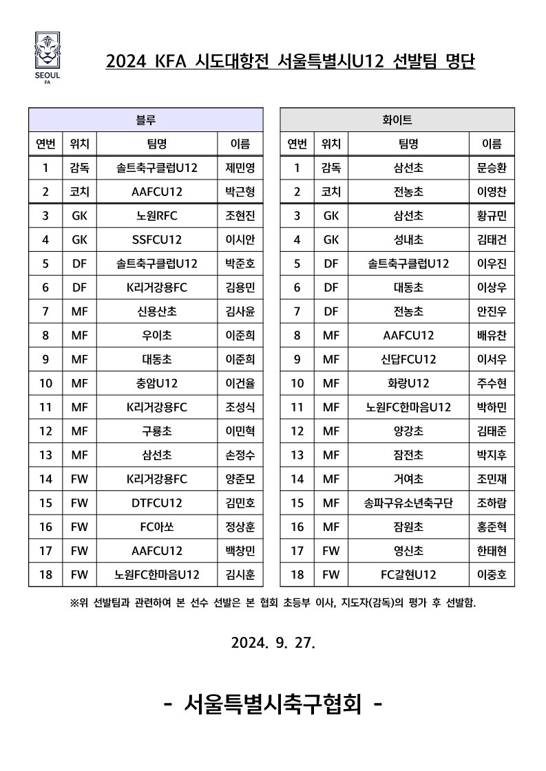 [스크랩] 2024 전국 초등축구리그 KFA 시도대항전 서울특별시U12 선발 명단 작성자한국축구신문|작성시간24.09.30|조회수712 목록 댓글 0 글자크기 작게가 글자크기 크게가 다음검색 스크랩 원문 : 풋볼뉴스(Football News) 현재 게시글 추가 기능 열기 북마크 공유하기 신고 센터로 신고 댓글 댓글 0 댓글쓰기 답글쓰기 댓글 리스트