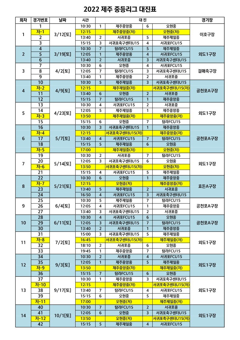 [스크랩] 2022 전국중등축구리그 제주권역리그 대진표(3월12일~10월1일) 작성자한국축구신문|작성시간22.02.22|조회수551 목록 댓글 0 글자크기 작게가 글자크기 크게가 2022+중등리그+대진표(저학년+포함).pdf24.56KB 첨부파일첨부된 파일이 2개 있습니다. jpg 파일 2022+중등리그+대진표(저학년+포함)_1.jpg 다운로드 pdf 파일 2022+중등리그+대진표(저학년+포함).pdf 다운로드 다음검색 스크랩 원문 : 풋볼뉴스(Football News) 현재 게시글 추가 기능 열기 북마크 공유하기 신고 센터로 신고 댓글 댓글 0 댓글쓰기 답글쓰기 댓글 리스트