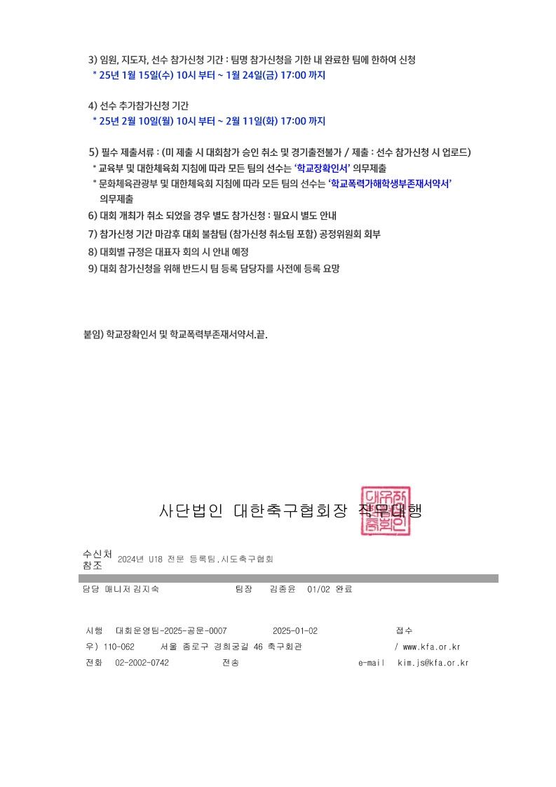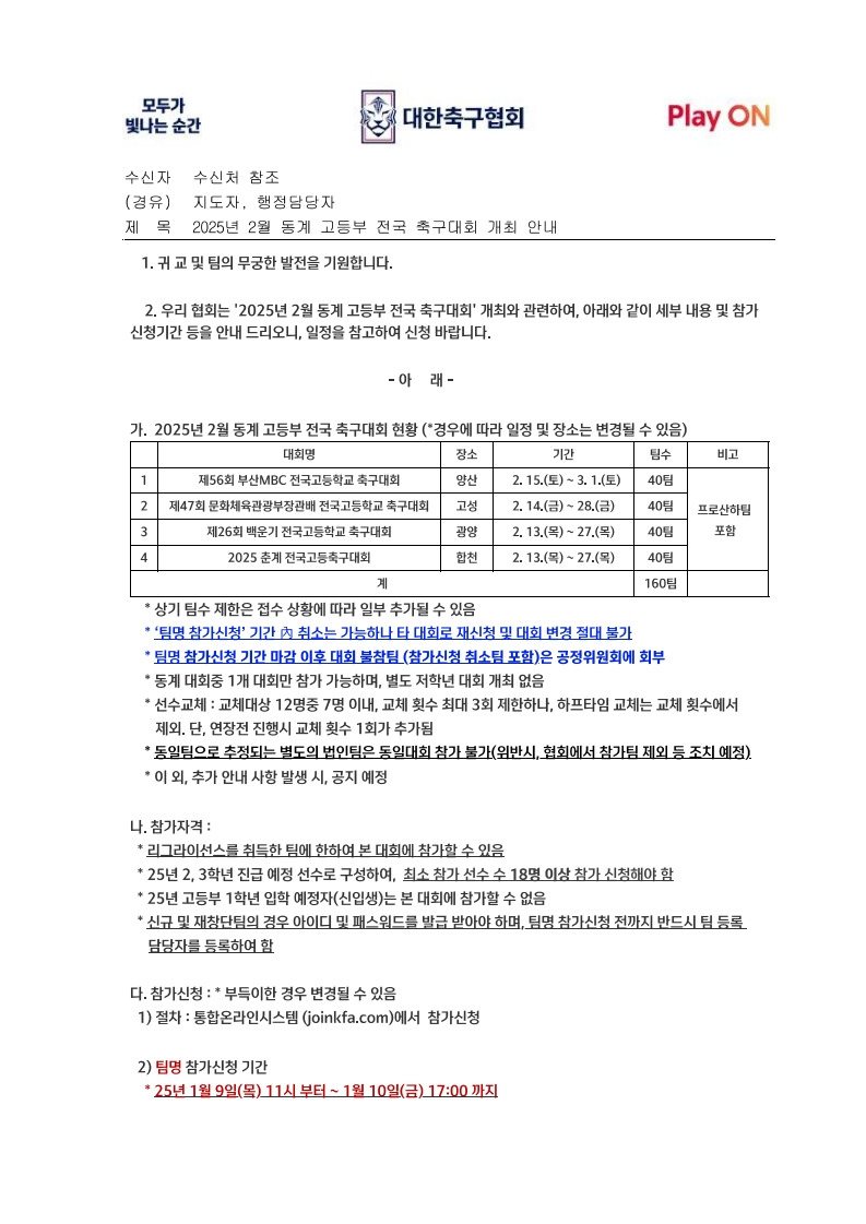 [스크랩] 2025년 2월 동계 고등부 전국 축구대회 개최 안내 작성자블루문|작성시간25.01.02|조회수1,086 목록 댓글 0 글자크기 작게가 글자크기 크게가 다음검색 스크랩 원문 : 풋볼뉴스(Football News) 현재 게시글 추가 기능 열기 북마크 공유하기 신고 센터로 신고 댓글 댓글 0 댓글쓰기 답글쓰기 댓글 리스트
