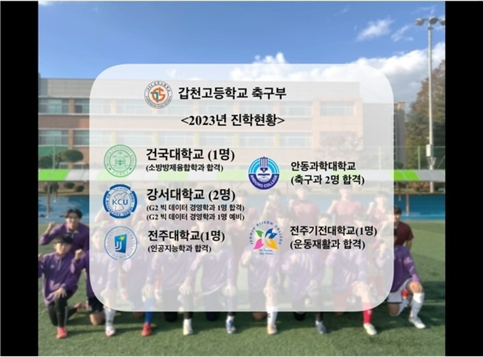 갑천고는 전국 상위권의 축구부 내신 성적을 기대할 수 있다.