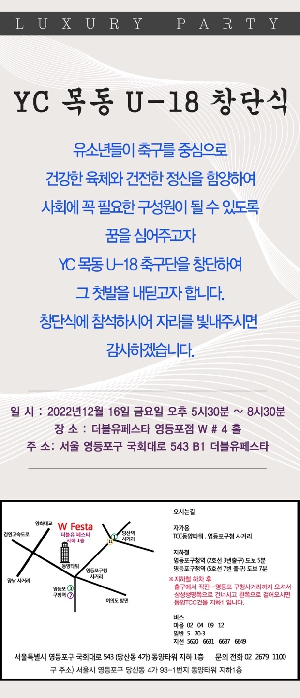 [창단식] 2022 YC목동 U-18 축구단 창단식 알림