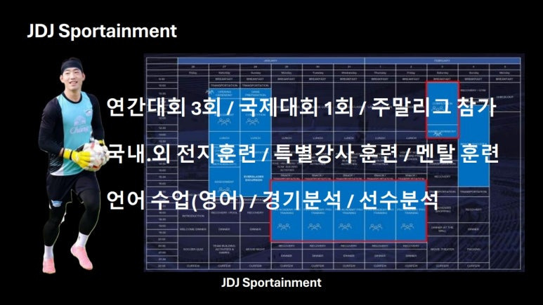JDJ FC는 주말리그 참가는 물론 연 3회 전국대회에 참가할 예정이고, 매년 1회 국제대회에도 참가할 예정이라 선수들이 팀에서 갈고 닦는 외국어가 국제대회 출전 시 많은 도움을 줄 것으로 기대된다.
