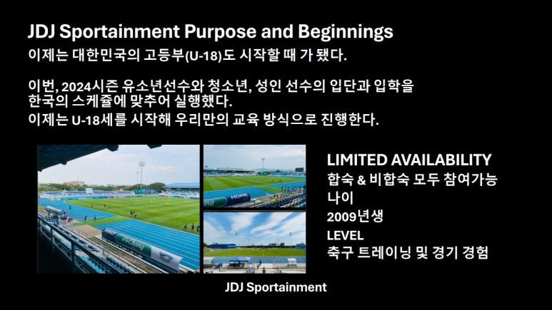 자율적 프로세스 지향! 「JDJ SPORTAINMENT ACADEMY U-18」 창단! 잠재력 있는 선수 모집!