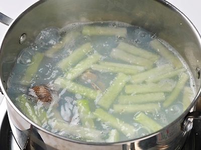 2대파는 어슷 썰고, 무는 굵게 채 썰고,