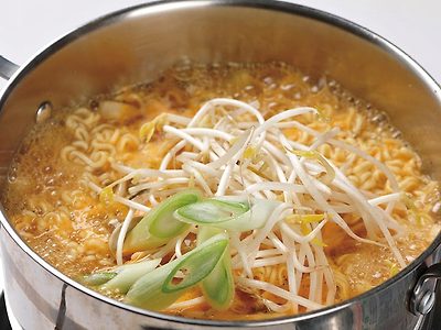 5면이 거의 다 익으면 숙주와 대파를 넣고 살짝 더 끓여 마무리.