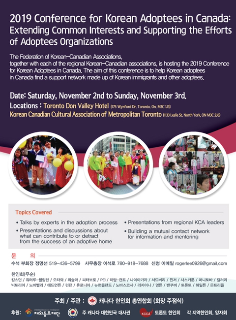 2019년 한인 입양인 행사 컨퍼런스 공고 포스터 작성자김명진|작성시간19.10.17|조회수115 목록 댓글 0 글자크기 작게가 글자크기 크게가 2019 한인 입양인 행사 컨퍼런스 공고 다음검색 현재 게시글 추가 기능 열기 북마크 공유하기 신고 센터로 신고 댓글 댓글 0 댓글쓰기 답글쓰기 댓글 리스트