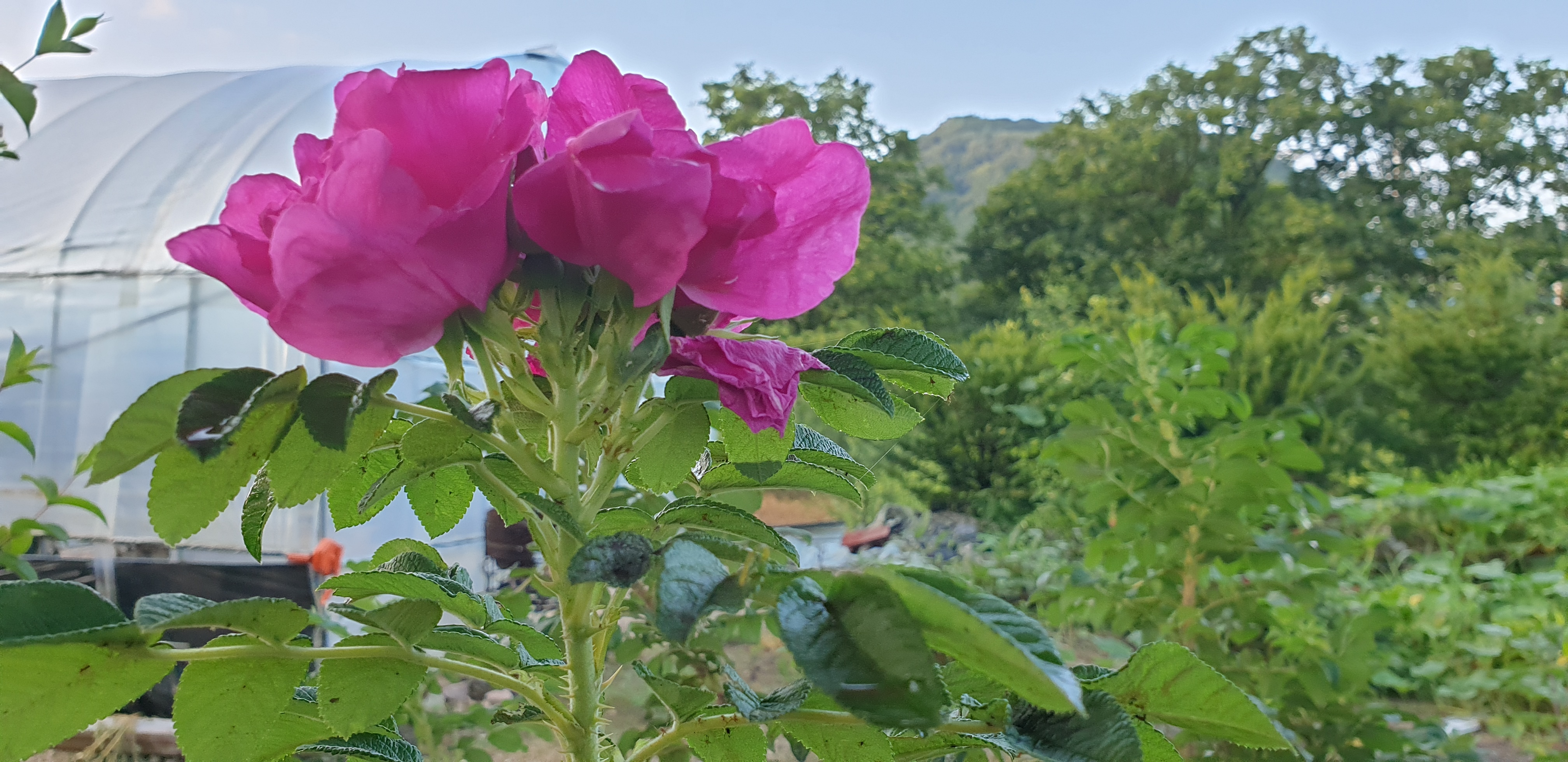 꽃은 5∼7월에 피고 가지 끝에 1∼3개씩 달리며 홍색이지만 흰색 꽃도 있다. 꽃은 지름 6∼10cm이고 꽃잎은 5개로서 넓은 심장이 거꾸로 선 모양이며 향기가 강하다. 수술은 많고 노란색이며, 꽃받침조각은 녹색이고 바소꼴이며 떨어지지 않는다.