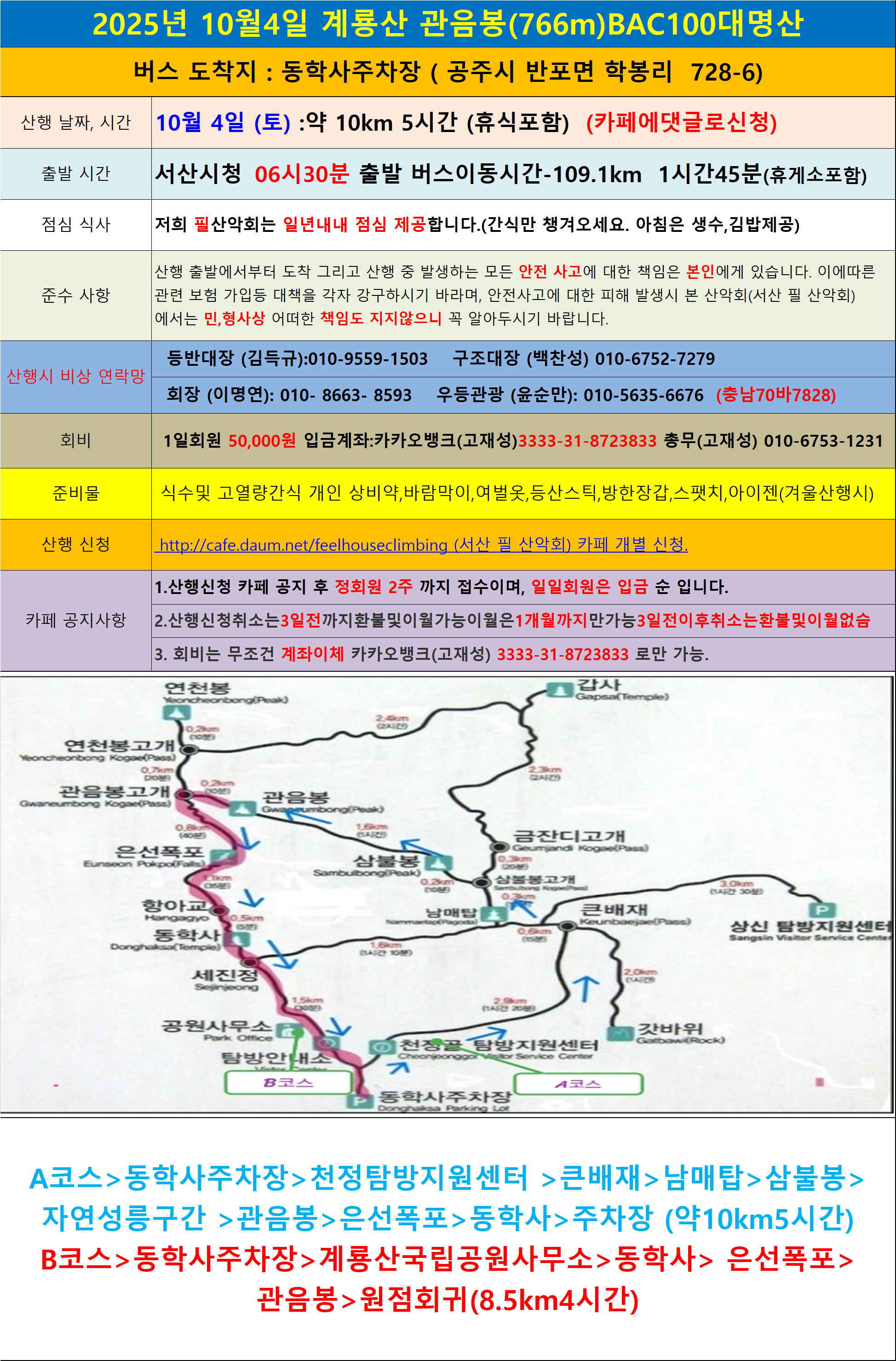 답댓글 작성자고재성(쨍이 ) 작성시간 25.09.30 김동찬님 10월 계룡산 신청 감사합니다.