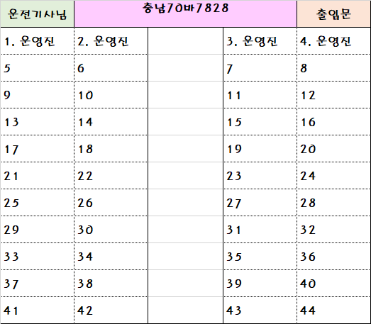 2. 산행 신청시 아래 좌석을 확인하시고 성함과 좌석번호를 적어주시기 바랍니다.