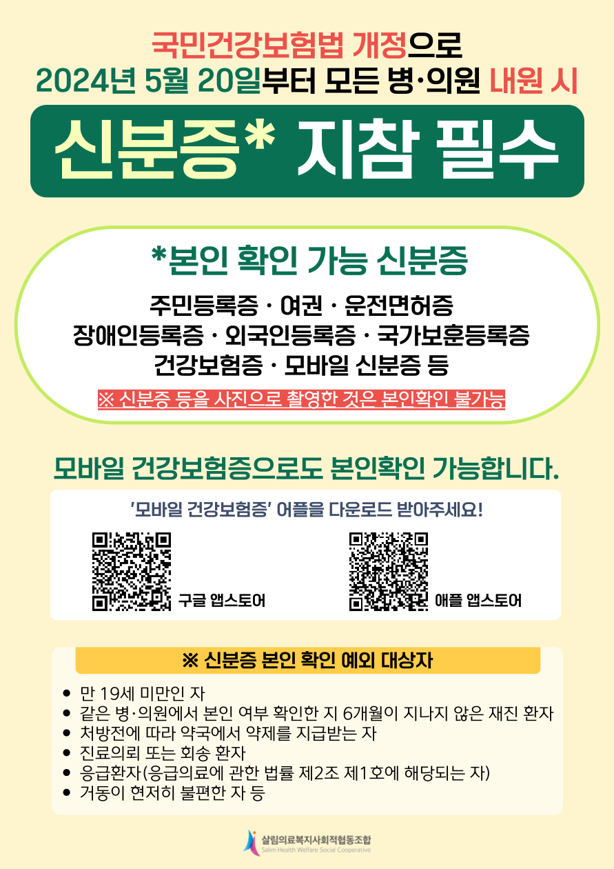 번거롭더라도, 신분증을 지참하여 내원하시기 바랍니다.