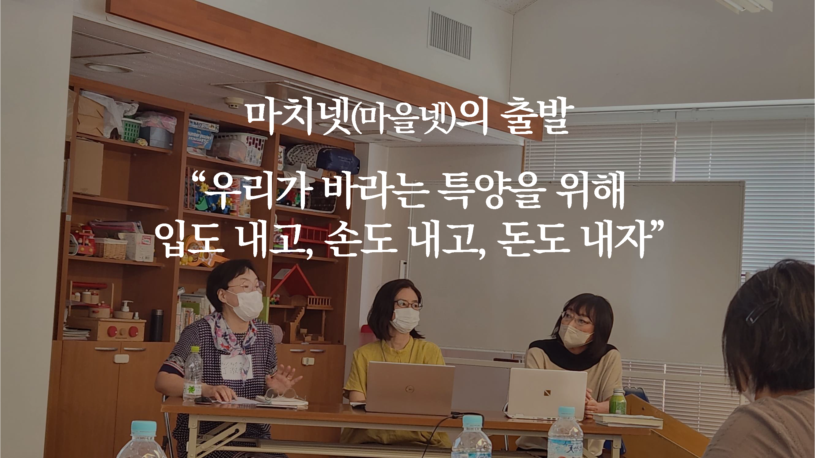 치바그룹의 10개의 조직들이 가지고 있는 '우리 손으로 한다'는 태도. 그리고 마치넷(마을 넷) 이라고 하는 조직에서 말하는 '우리가 바라는 것을 위해 입도, 손도, 돈도 내자라는 이야기를 합니다. 이 부분도 어딘가 낯설지 않지요. 우리가 항상 얘기하는 생각의 협동, 자본의 협동, 노동의 협동이랑 굉장히 비슷합니다.