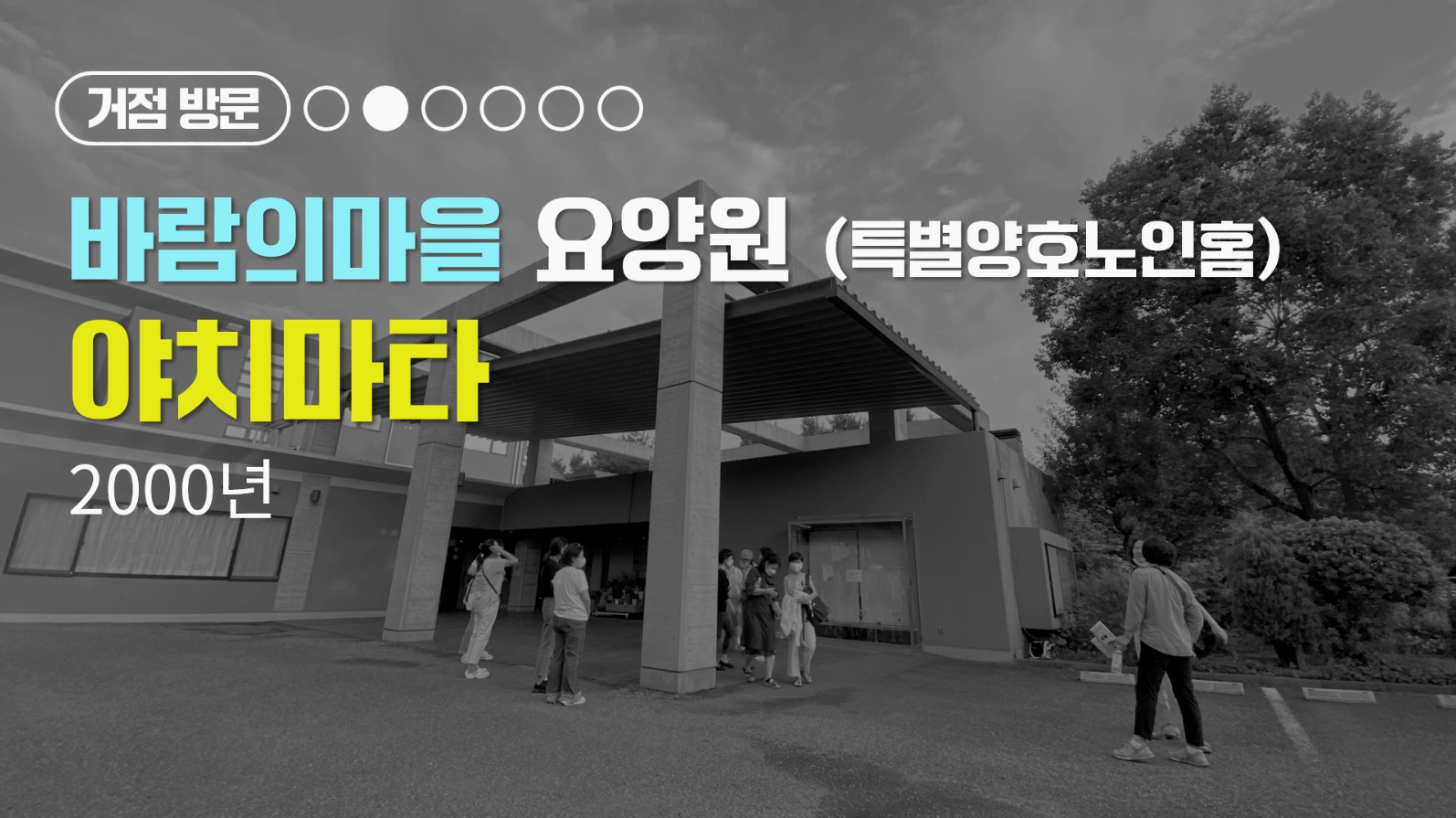두번째 방문 거점은 바람의마을 요양원, 야치마타(2000년)입니다. 야치마타는 일본 최초의 전체 1인실/유닛케어 노인 요양원입니다. 두근거리는 마음으로 입장한 살림에게 가장 먼저 보였던 것은 '또 하나의 우리집'이라는 간판이었습니다.
