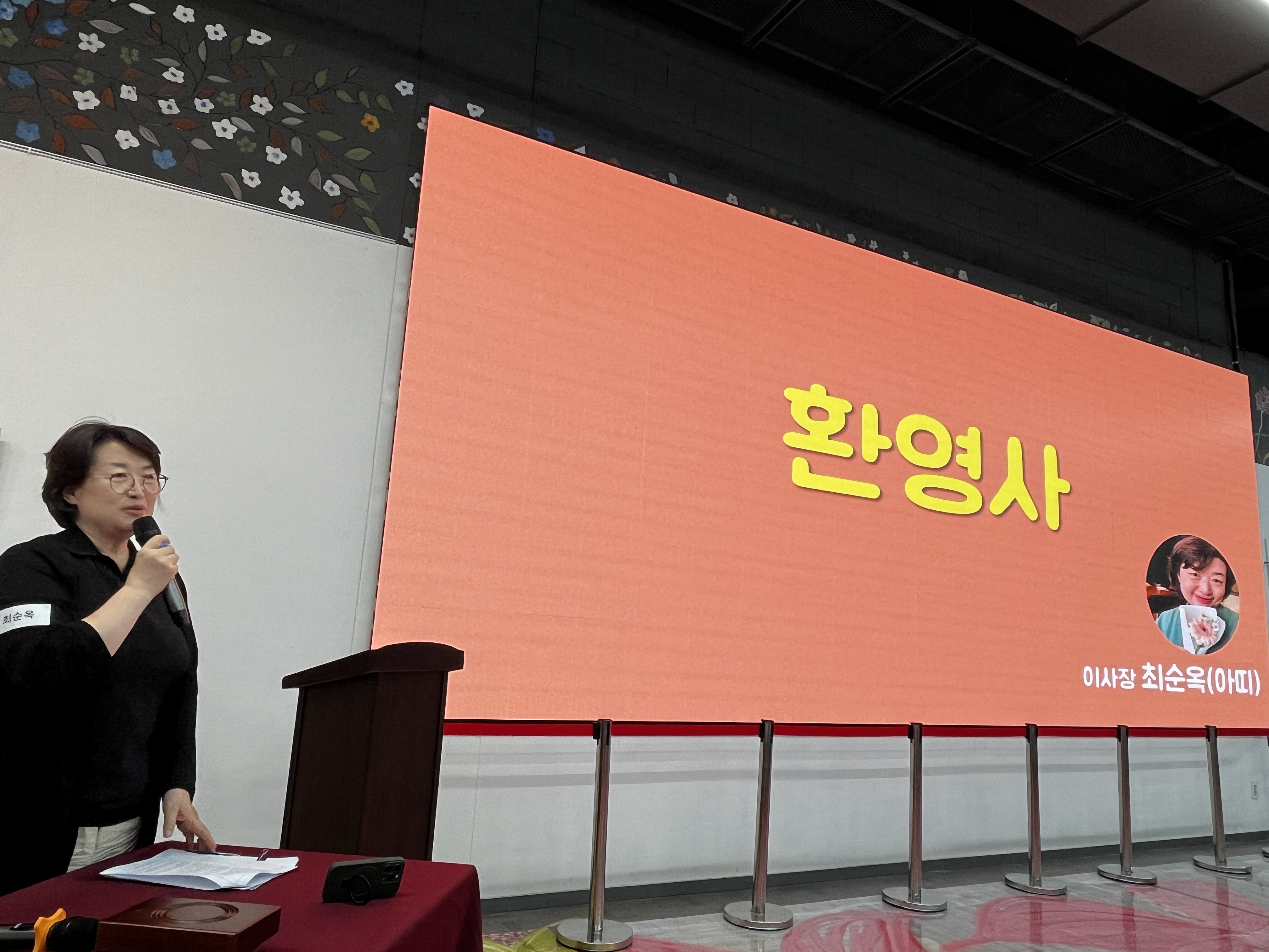 먼저, 최순옥(아띠) 이사장님의 환영사로 총회의 문을 열었습니다.
