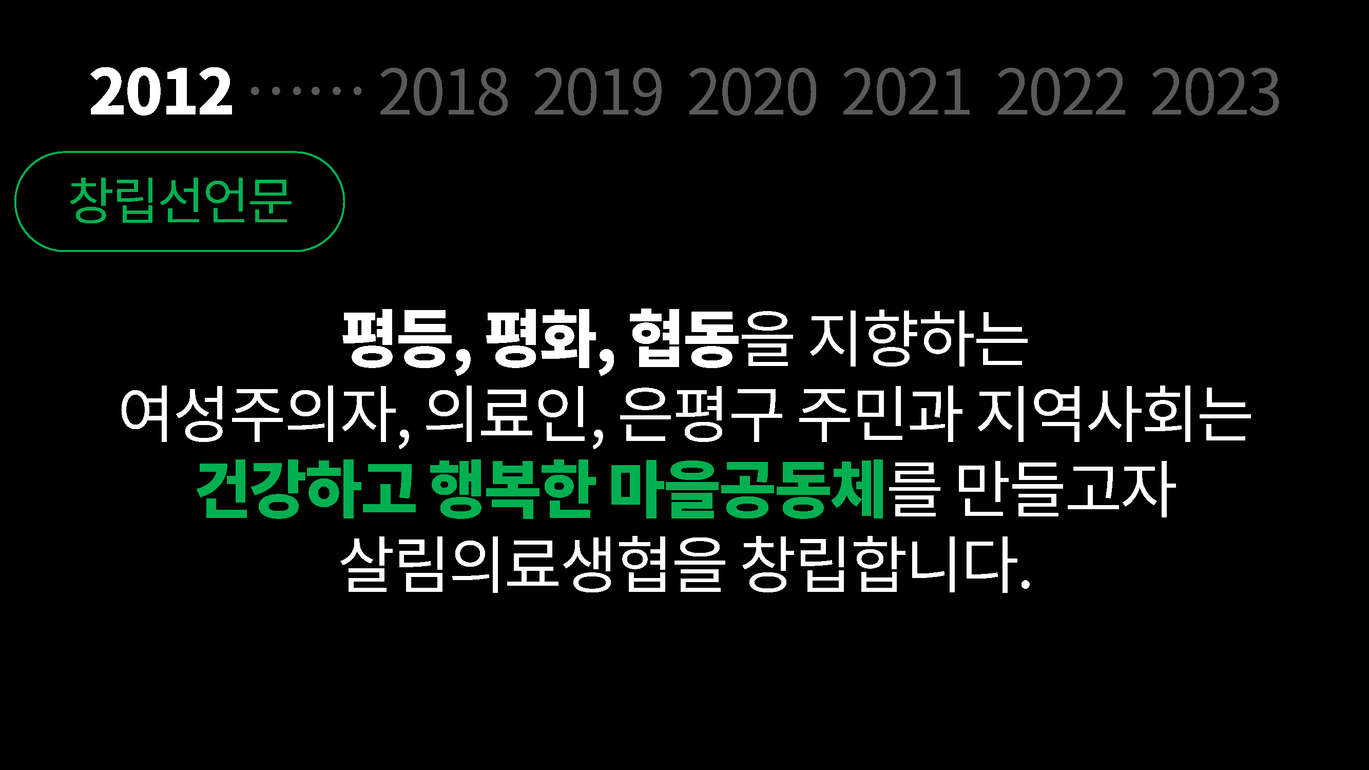 살림의 창립선언문을 보면 '평등, 평화, 협정을 지향하는 여성주의 주민들과 지역사회가 건강하고 행복한 마을 공동체를 만들고자 창립했다.' 라는 내용이 있죠. 자연스럽게 살림 안에서는 이 선언문에 나오는 '건강하고, 행복한 마을 공동체'가 뭘까? 어떻게 만들 수 있을까? 뭐가 필요할까?를 점점 고민하고 구체화시켜갔다고 해요.