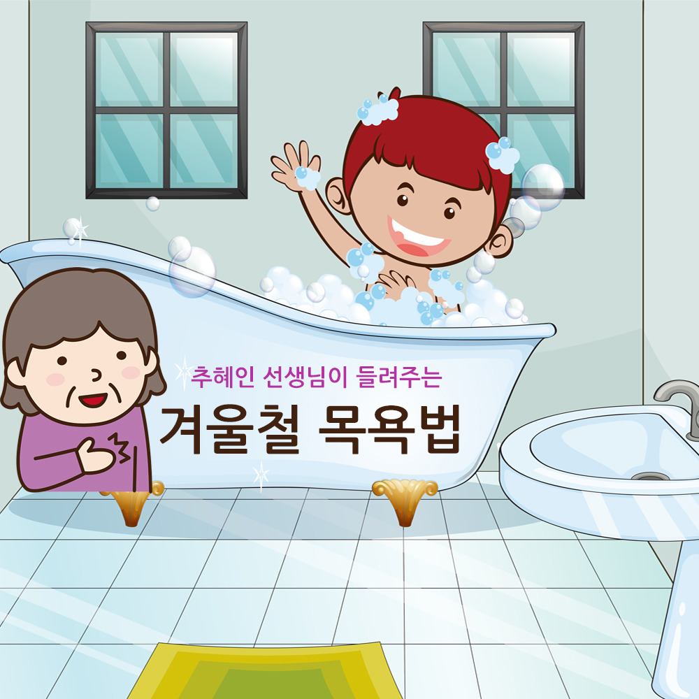 겨울철 목욕법은, 평소 건강한 성인들보다는 아이들과 어르신들을 위해 꼭 필요한 방법입니다. 우리 모두의 건강하고 안전한 겨울을 위해!
