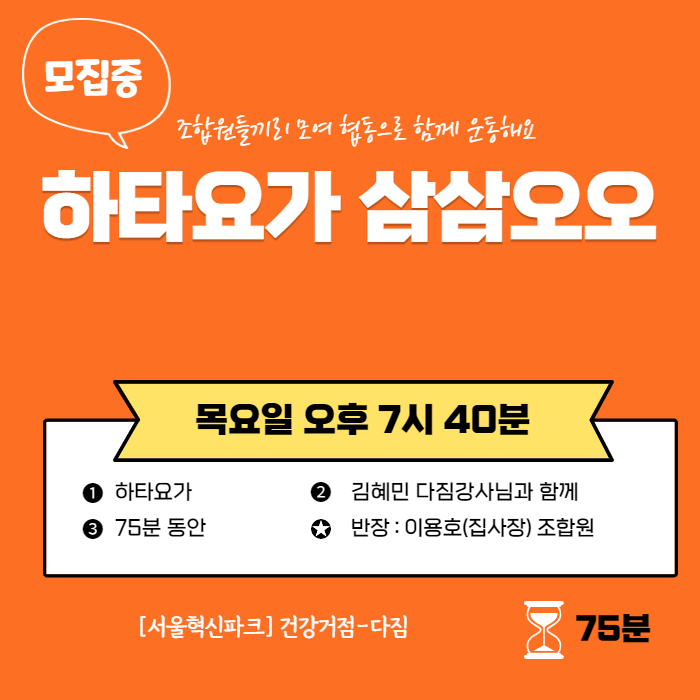 - 하타요가 삼심오오 인원제한 없이 모집 중