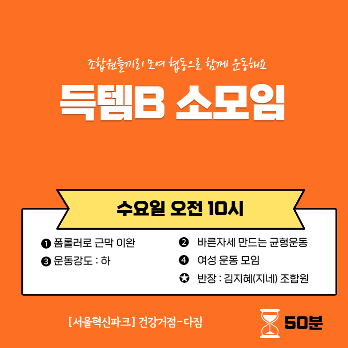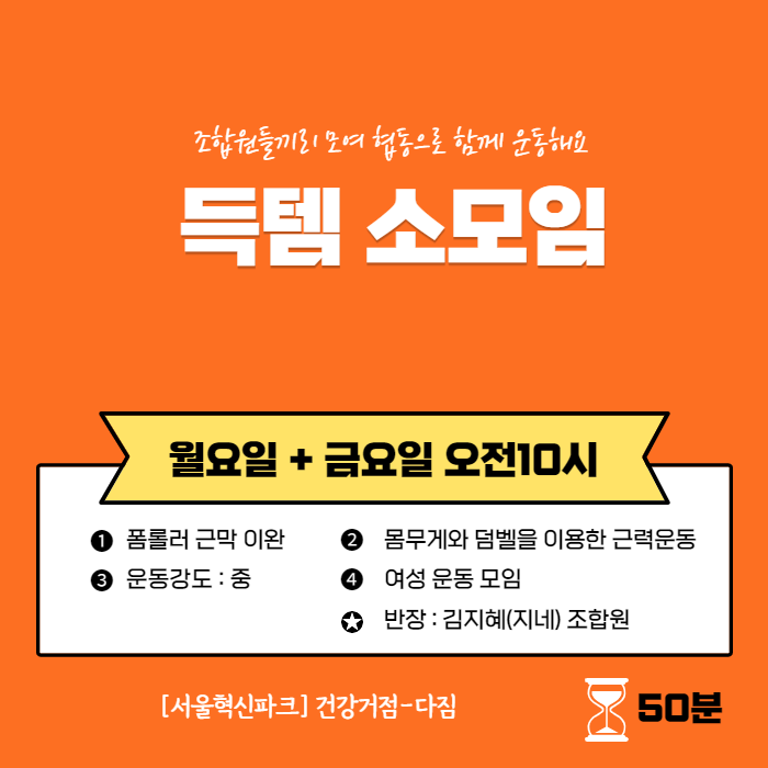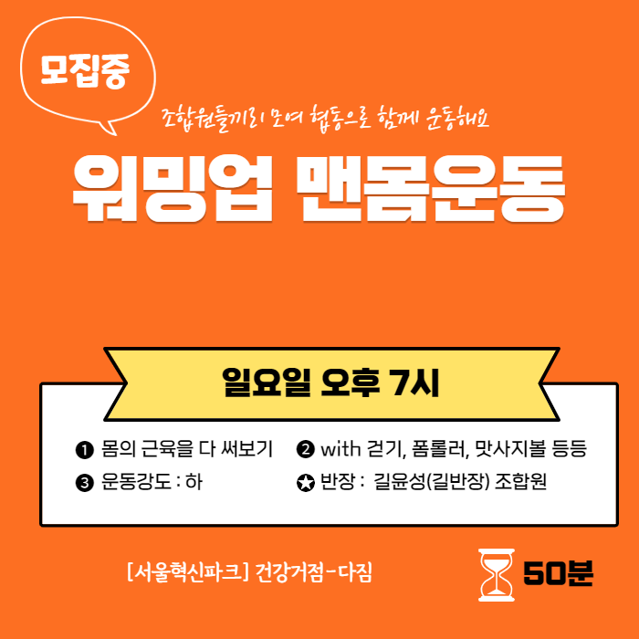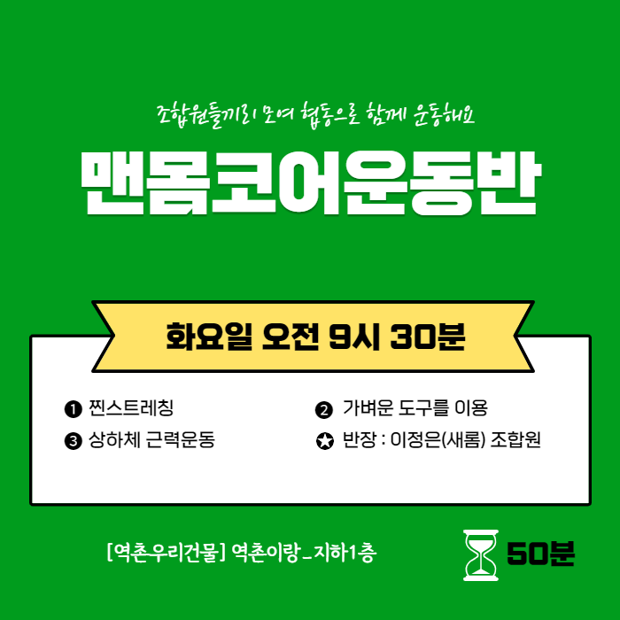 - 맨몸코어운동 모집중 각각 1명(월, 목)