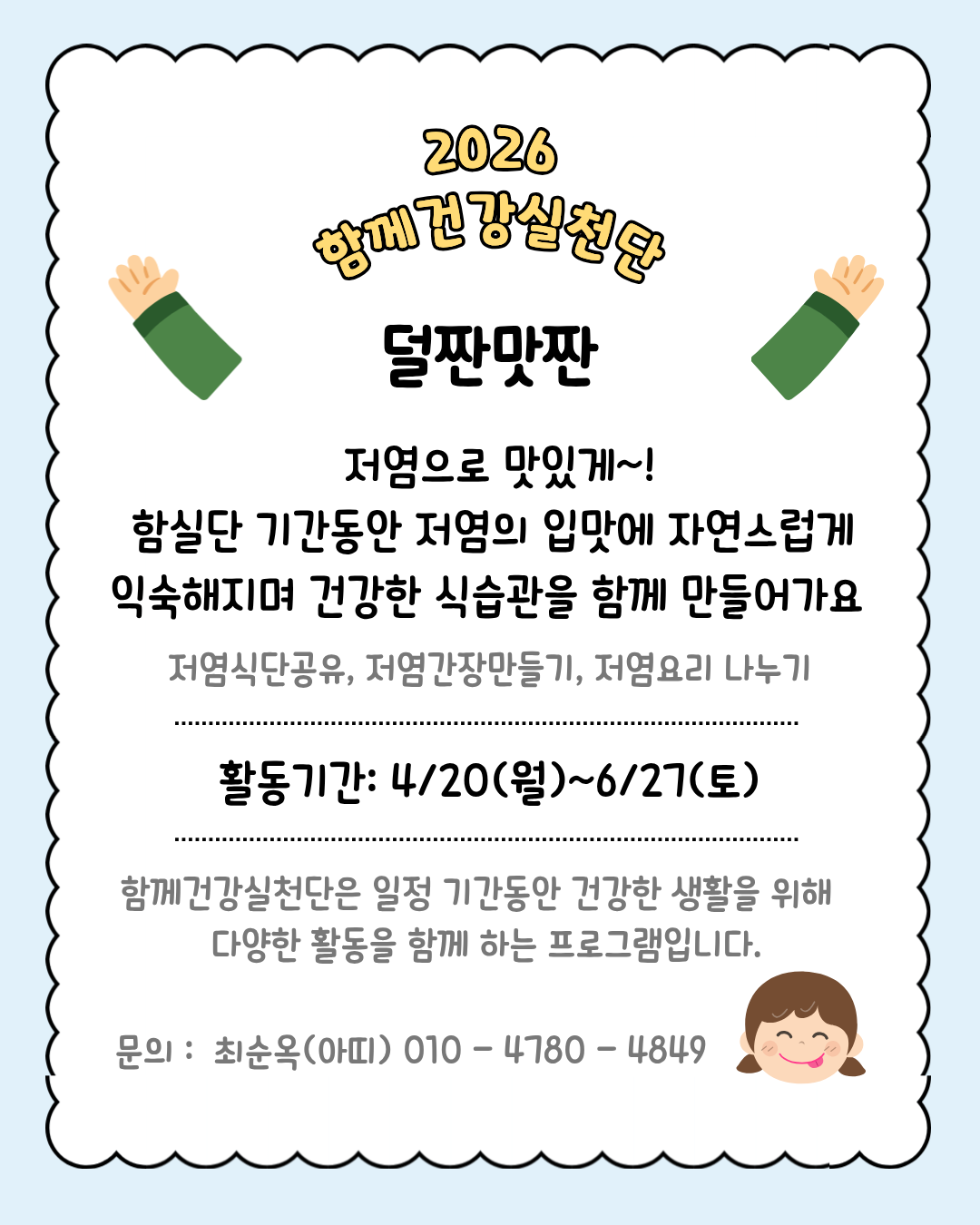 저염식단 추구 모임 <덜짠맛짠! > 이것저것 같이 해봐요^^ 작성자아띠|작성시간26.04.10|조회수27 목록 댓글 0 글자크기 작게가 글자크기 크게가 다음검색 현재 게시글 추가 기능 열기 북마크 신고 센터로 신고 댓글 댓글 0 댓글쓰기 답글쓰기 댓글 리스트