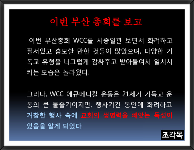부산총회 wcc를 보신 소감은..