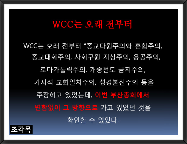 사람이기에(목사,신학자) wcc에 대해서 잘못 판단할 수도 있습니다. 여러분이 기억해야 할것은
