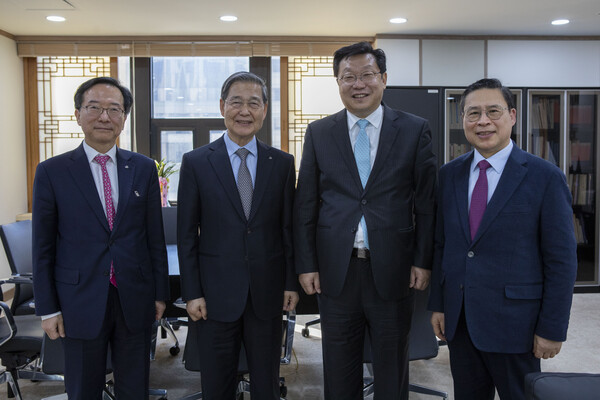 사진은 왼쪽부터 정명기 사무총장, 감경철 본부장, 주형환 부위원장, 장헌일 정책위원장